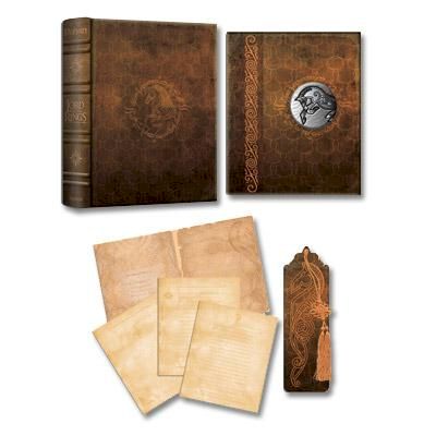 This awesome journal set comes with a leather Rohan journal and matching bookmark. Each page has a Rohan design background. Stunning! It is still available for purchase at Tolkien Town. |