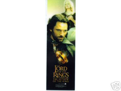 This bookmark features a lenticular image of Éowyn and Aragorn. I stumbled across it while searching Ebay. I believe that it is from Japan, so the only way to get it in any other country would be to go on Ebay. |